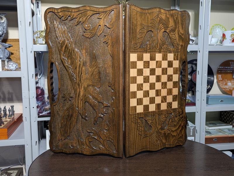 Если вы хотите иметь оригинальную, стильную вещь, которой точно ни у кого не будет, то нарды из натурального дерева ручной работы, произведенные в Армении, станут именно тем вариантом. На деревянной доске вырезан роскошный орел, олицетворяющий силу, могущество, господство, храбрость и превосходство. Вся работа проведена на высшем уровне, поэтому держать в руке нарды – это сплошное удовольствие. Может показаться, что вы перенеслись в далекий мир древней Армении, где талантливые, живущие в горах умельцы создавали своими руками вот такие настоящие шедевры. Времена поменялись, но от этого качество их работы не стало хуже, и убедиться в этом вы можете уже сейчас вместе с деревянными нардами «Орел».