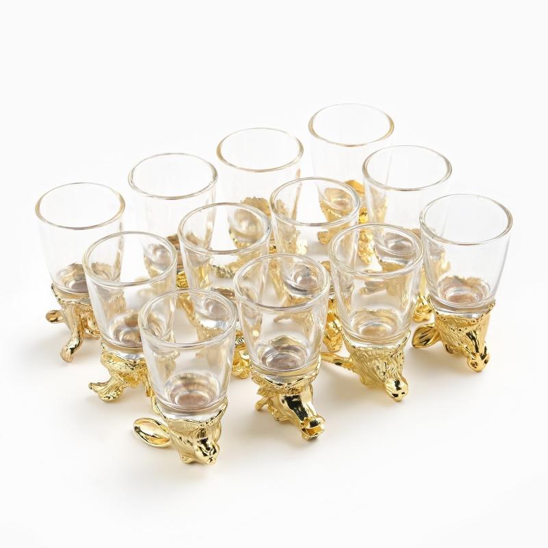 Набор выполнен под двенадцать знаков зодиака, каждый из которых принадлежит определенному животному. Стопки будут прекрасно сочетаться с любой сервировкой и могут использовать как для повседневного использования, так и для особых случаев. Кроме того, стеклянные прозрачные рюмки легко моются и не подвергаются коррозии.