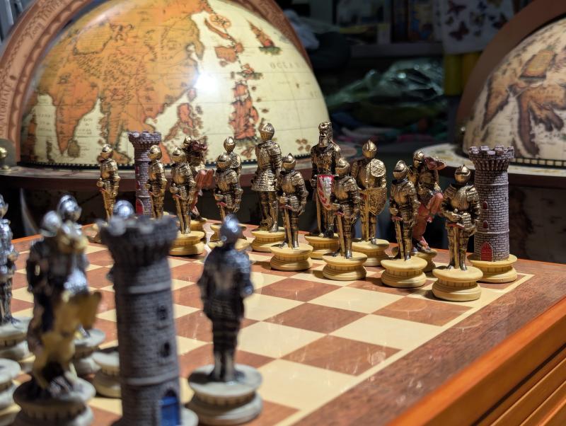Шахмат «Рыцари» из полистоуна с деревянной доской.