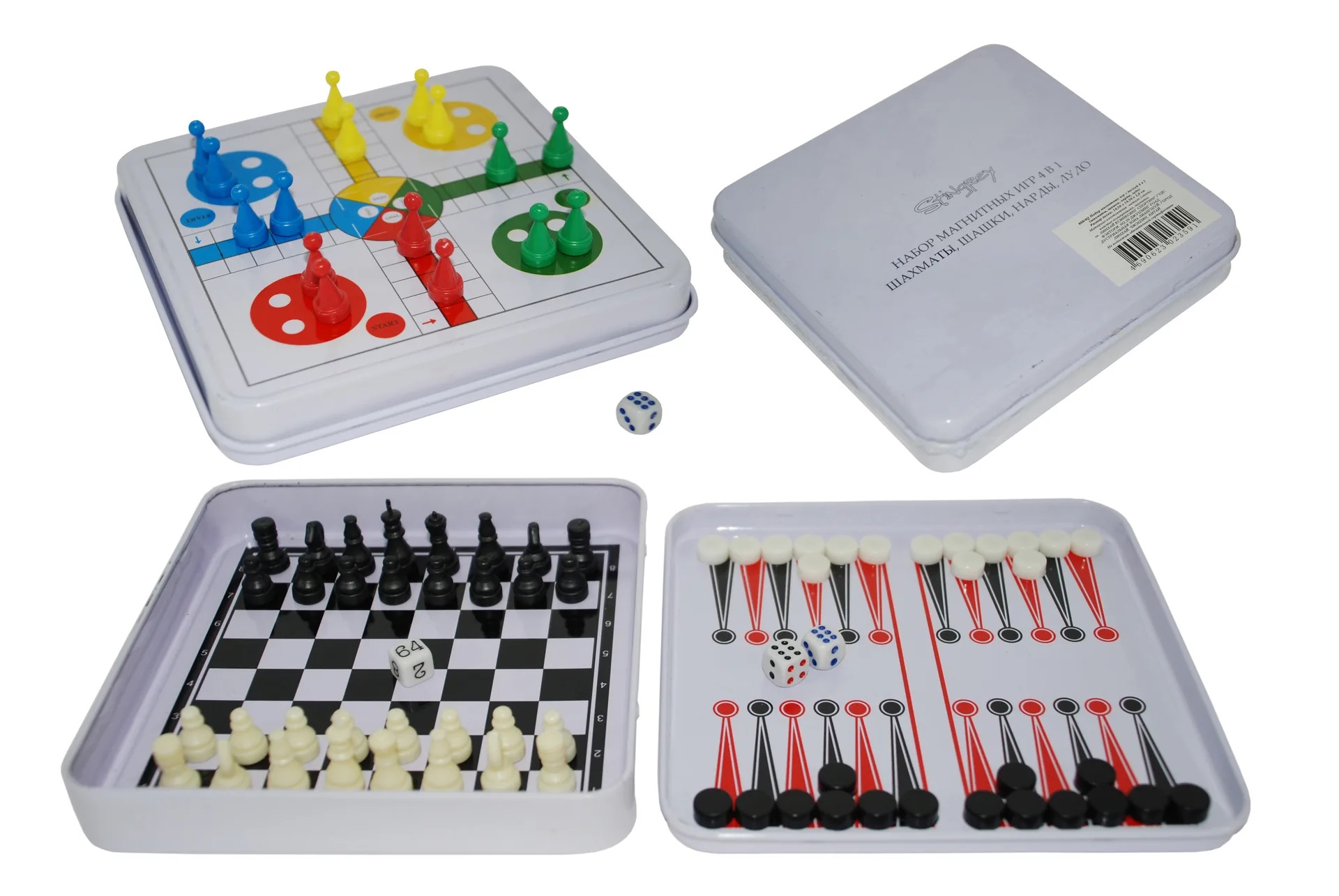 Набор магнитных игр с доской 4 в 1 (шахматы, шашки, нарды, лудо)