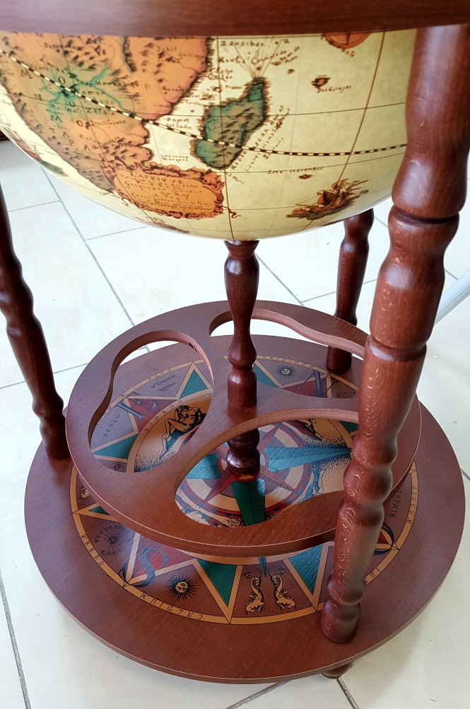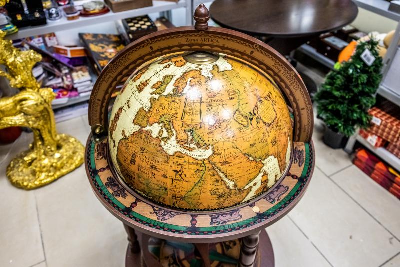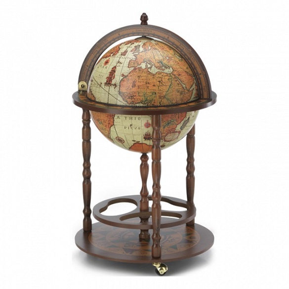 Один из самых популярных глобус-баров на нашем сайте. На сферу бара нанесена старинная карта 16 века. Отлично будет смотреться в любых по размеру помещениях, этот бар глобус придаст завершенности к классическому стилю дома. Выполнено изделие из твердых лиственных пород дерева. Один из немногих глобус-баров у которых сфера полностью вращается вокруг своей оси. Благодаря колесам его можно легко перемещать в пространстве помещения, не опасаясь за сохранность напитков. Оригинальный глобус-бар, который наполнит помещение духом прошедшего времени и создаст особую, теплую атмосферу. Даст возможность красиво хранить алкоголь всегда под рукой, что особенно важно, когда Вы ожидаете гостей.