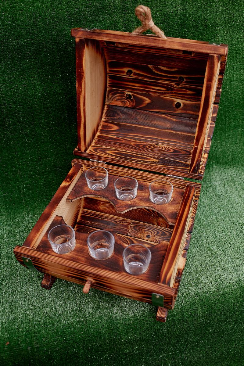 Мини-бары уже давно стали не редкостью в домах. Это удобный способ правильно хранить алкоголь, а также иметь удобный доступ к нему, чтобы в приход гостя или после напряженного трудового дня пригубить немного элитного алкоголя. В наборе 6 стеклянных рюмок, которые хранятся внутри бочки и 2 отдела под бутылки. Так что здесь все под рукой.