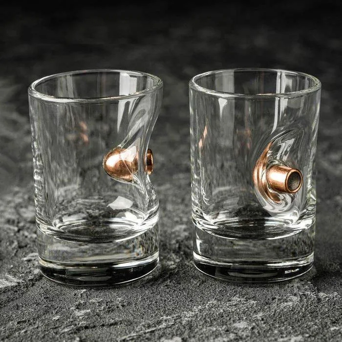 Этот набор стопок с настоящей пулей станет солидным и одновременно оригинальным подарком человеку интересующегося тематикой оружия или охотой.