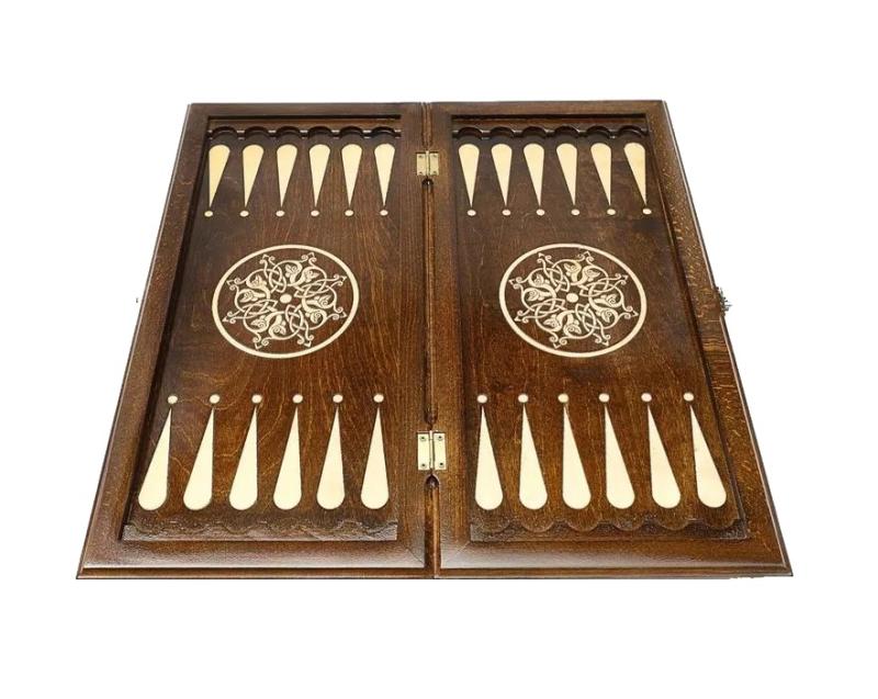 Резные нарды ручной работы выполнены лучшими армянскими мастерами. Доска изготовлена из натурального дерева бук. Петли и замки - бронза. Упакованы в сумку-чехол. Такие нарды будут радовать своего владельца долгие годы, а играть в них одно удовольствие. Если Вы решили купить хороший подарок себе или знакомому, то эти нарды в самый раз.