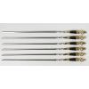 Наши наборы шампуров — это элитный подарок мужчине на любой праздник, юбилей или день рождения. Это оригинальный, практичный и главное долговечный презент. Такие шампура не только красивы, но и очень удобны в использовании. Набор из 6-ти шампуров всегда пригодится на природе, чтобы приготовить вкусные и полезные блюда — мясо, рыбу, овощи. Рабочая длина 55 см