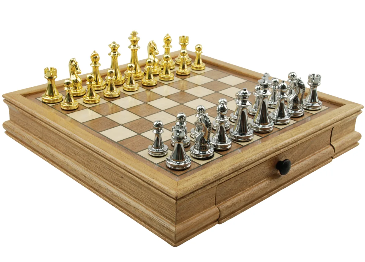 Король: 6,5 (в) х 2,7 (Ø основания) см., пешка: 3,1 (в) х 2,0 (Ø основания) см