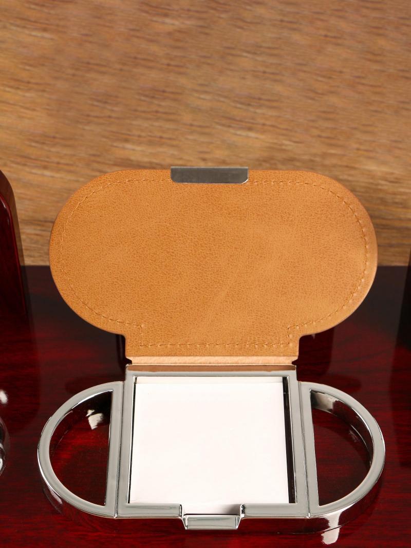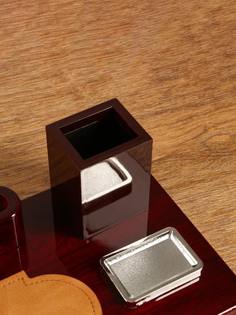 Компактный настольный набор поможет избежать хаоса на рабочем месте. Храните в нём канцелярские принадлежности или другие мелочи, чтобы правильно организовать пространство. К тому же изделие имеет минималистичный дизайн и выполнено под дерево, поэтому оно украсит собой любое место как декоративный элемент.