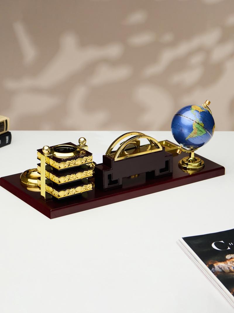 Компактный настольный набор поможет избежать хаоса на рабочем месте. Храните в нём канцелярские принадлежности или другие мелочи, чтобы правильно организовать пространство. К тому же изделие имеет минималистичный дизайн и выполнено под дерево, поэтому оно украсит собой любое место как декоративный элемент.